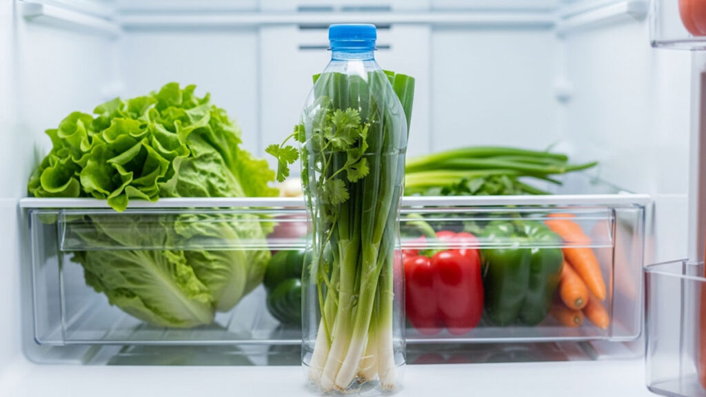 • นำขวดไปวางในช่องแช่ผักของตู้เย็น ซึ่งเป็นบริเวณที่มีอุณหภูมิและความชื้นเหมาะสมที่สุดสำหรับการเก็บผักสด